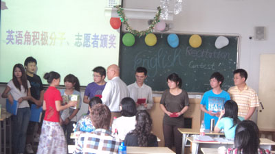 为了丰富学生的学习生活,提高学生的英语学习兴趣,加强英语听说能力的锻炼,英语角特此举办了2011年首届英语朗诵比赛。