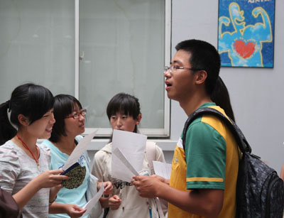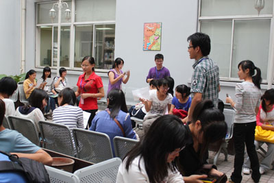 在学院领导谢院长的关心下,在基础部各位英语老师和各系英语角志愿者的精心筹备下,新学期的英语角于2011年9月27日在图书馆一楼开放式大厅火热开幕了。