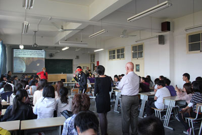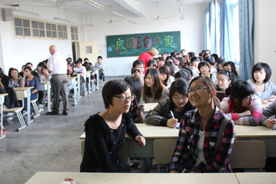 在同学们的热切期待下,10月18日下午3点同济大学外教Paul和Geil来到了414教室参加本期的英语角。同学们心潮澎湃,总共91名同学拥坐在414教室,场面盛况空前。