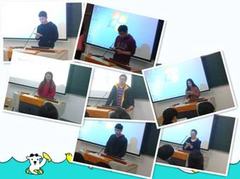 比赛开始前,参赛选手们早早地来到会场,等待着比赛的开始。在主持人的主持下,比赛开始有序进行。尽管每位同学读的是相近的内容,但各自风格不同,使得比赛妙趣横生。有同学还运用了PPT,配上背景音乐,使听众更能体会到朗诵的魅力。