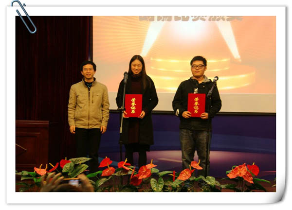 朗诵结束,评委老师们开始评分,这段时间内大家观看了影片“莎士比亚经典片段”。不知不觉评委老师已经打好分,接下来就是颁奖了。在此之前,一名获奖同学为大家演唱了一首《WILD》。音乐声响,他拿起话筒激情地唱了起来,所有同学都陶醉在他动听的嗓音中。待到音乐声落,颁奖正式开始!每位获奖同学拿起奖状的时候,脸上充满了成功的喜悦,这可真是花了不少的付出才换来的果实呀!
