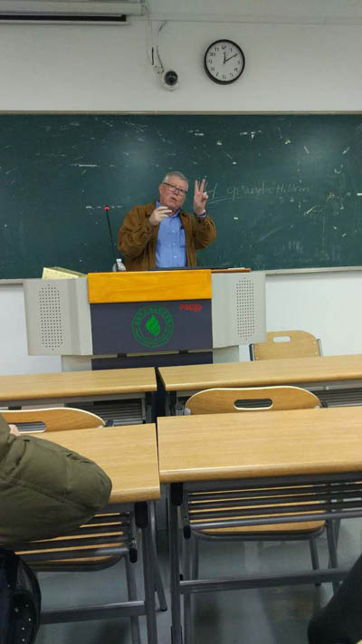 在活动开始之前,Carlos先做了自我介绍。他来自于美国,来中国五年了,目前在同济大学担任外语教师,之前也在交通大学担任执教。据前去迎接Carlos的同学所说,这名外教老师长居上海的日子里,也学会了一些上海话,在与之交谈的过程中,老师也开口讲了一些上海话,让人不得不赞叹他那活到老学到老的精神。