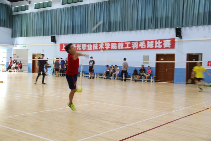 2017年5月19日,上海济光职业技术学院教工羽毛球团体对抗赛在体育馆举行,本次比赛由学院工会和基础部部门工会共同主办。工会主席王滟致辞,裁判长孟凡涛老师宣读比赛规则,李永盛院长吹响比赛哨音后,全场比赛正式开始。选手不分年龄都充满激情,个个都摩拳擦掌,毫不示弱,充分展示出了济光全体教职工的阳光与活力。