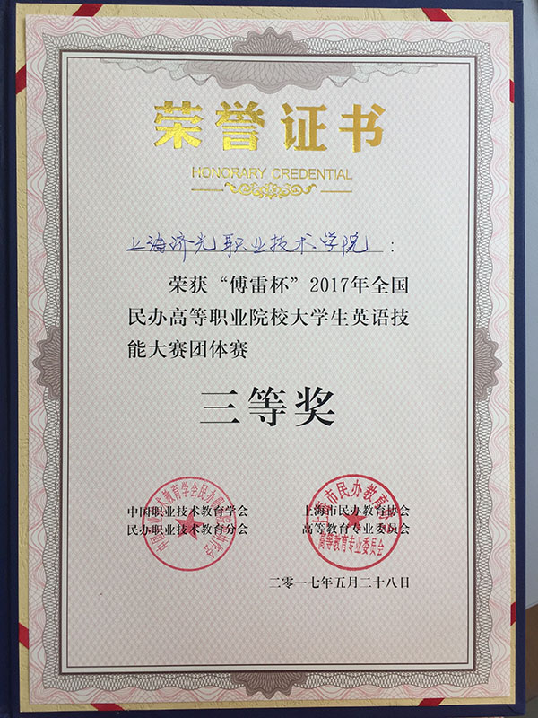 我院在“傅雷杯”2017年全国民办高等职业院校大学生英语技能大赛中获得佳绩