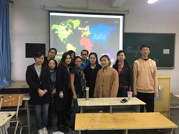 Mafe老师首先说,她喜欢的中国代表景点是The Great Wall。作为世界七大奇观之一的长城,同学们再熟悉不过,所以他们个个都跃跃欲试,迫不及待地想要发表自己的观点和看法。接着,同学们以抽数字问答互动的形式来引出本次英语角的主题——Geographic Activities。大家积极投身于激烈的讨论中,提到了浪漫的法国,啤酒之国的德国,繁华的美国,还说到了意大利。