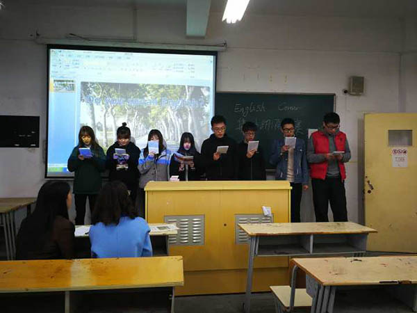 和个人朗诵比赛的要求不同,集体朗诵比赛是以班级为单位,至少有八名同学参加,从英语早读手册Lesson1-30中任选一个单元进行朗诵。该比赛要求参赛选手们配合默契,声音洪亮,整齐划一。比赛中,同学们的积极性很高,机电、经管和护理等系各专业班级纷纷报名参加。有赖于师生们平时的努力和早读的效果, 大家把单词记得较牢固,而且朗读的语音、语调都很不错,语速也正常。但是也有不足的地方,比如有些班级在朗读句子时,单词含糊,发音不够准确;也有部分学生朗读较急躁,以及有个别学生是喊读的。但总体来说,大家的积极性值得肯定。经过了两天的比拼,最后有7个班级脱颖而出,成功地进入了决赛。