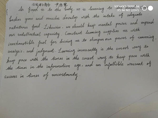 2019年济光学院英语书法比赛于4月16日中午在教学楼二楼举行,比赛得到了同学们的热烈响应,现将比赛结果公布如下:
