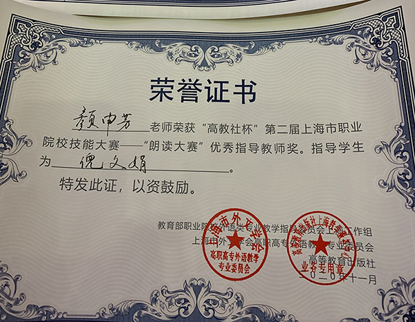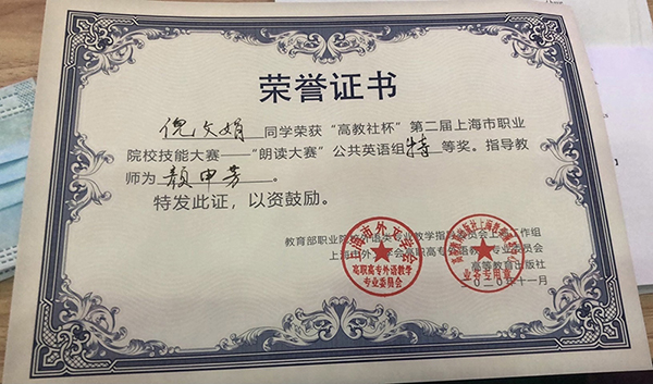 努力终有回报。最终,倪文娟同学不负众望,以总分92.22的高分在决赛中战胜其他强劲对手,获得了此次朗读比赛的特等奖,展现了我校学子的风采,为我校争得了荣誉,也践行了济光“求实求新,人人成材”的校训。同时, 颜申芳老师也获得了优秀指导老师奖。