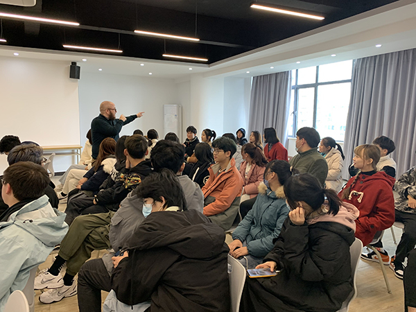 12月15日,杨浦校区艺术系407多媒体教室里传来了阵阵笑声——原来这天是艺术系英语角特别外教日活动。来自英国的Paul是本次英语角活动的主持人。他给艺术系的学生们带来了圣诞节这个话题,得到了学生们积极的响应。