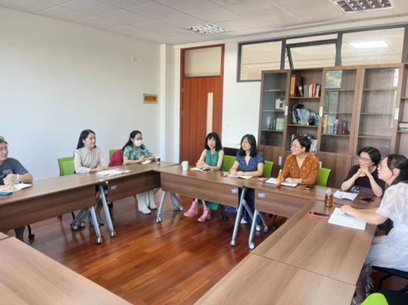 英语教研活动在212会议室由张丹丹老师主持,教研室全体专兼职老师参加,不能到场的老师则通过腾讯会议参会。