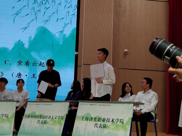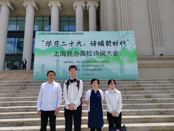2024年5月中旬,“学习二十大,诗颂新时代”上海市民办高校诗词大会在全市开展。本次大赛由中共上海市民办高校工作委员会指导,由中侨职业技术大学主办。大会初赛由各校自行选拔,我校基础部和团委联合举行了校内选拔。根据选拔测试题成绩和面试情况,最终,来自23网络1的张凡亮、23网络2的应佳琪、23软件2的黄文卓三位同学被选定为参赛选手。代表队组成后,基础部姜黎黎老师对三位选手进行了悉心指导,帮助他们复习了大量诗词知识,并指导排练了用于吟诵展示环节的表演节目。