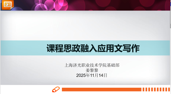 在随后的各校经验交流环节,各院校代表逐一发言,分别介绍了各自在挖掘大学语文课程思政内涵、创新教学方法等方面的探索与成果。 我校应用文写作课程组组长姜黎黎老师也在会上作了专题发言。她重点介绍了我校在应用文写作课程中融入课程思政的有效做法。我校应用文写作课程组通过深入剖析各类应用文体的特点,精准挖掘其中蕴含的思政元素,精心设计教学案例与写作实践,引导学生在掌握规范写作技能的同时,深刻理解职业操守、家国情怀与法治精神等价值观,实现了应用文写作课程与思政教育的同频共振,获得了与会同仁的广泛好评。